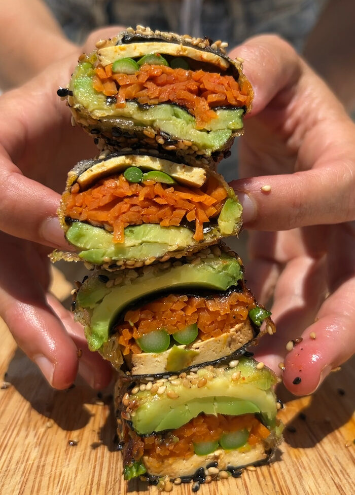 These ultra crispy rice paper nori rolls are a total game changer. They're packed with flavor, color, and texture, making them the perfect appetizer to share (or not!). I filled them with smoked tofu, gochujang-sautéed carrots, asparagus, and avocado, and enjoyed them with a simple tamari-ginger sauce. You can customize them to your liking and fill them with your favorite veggies and herbs. You can also add some tofu, tempeh, or your protein of choice.