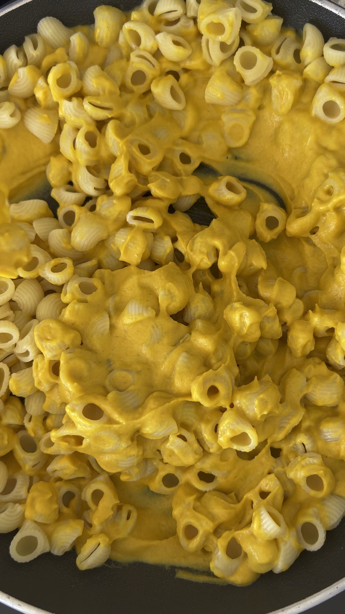 The butternut squash creates a silky base, while cashews blend smoothly for extra creaminess. Nutritional yeast gives the sauce its savory, cheesy taste. Garlic, onion, and a touch of lemon juice add depth and brightness. Toss it all with your favorite pasta, and you have a warm, satisfying meal.