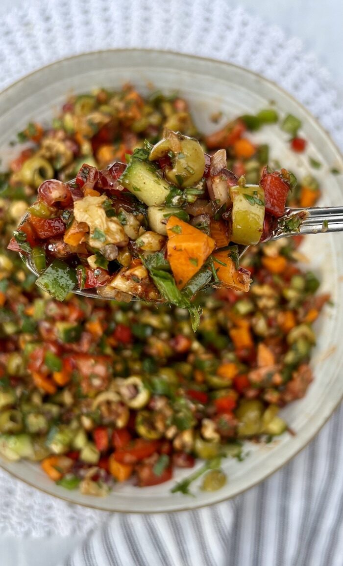 This Mediterranean / Middle Eastern Olive Salad is one of those dishes that just feels good. It's fresh, light, and full of flavor. It's great on its own, but I also love serving it alongside hummus, grilled vegetables, or as a topping for a warm bowl of quinoa or couscous.This salad has quickly become a go-to in my kitchen. I hope you love it as much as I do!