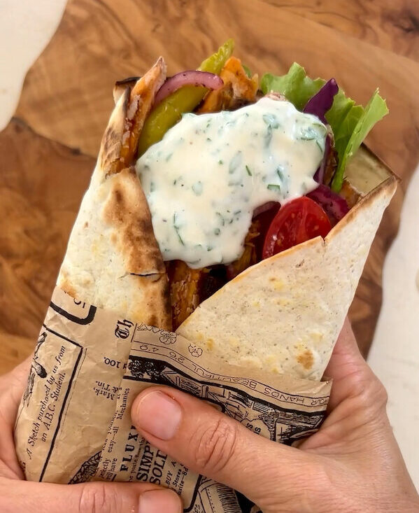 This vegan shawarma wrap is packed with flavor and color. The creamy, herby yogurt sauce makes it irresistibly tasty, while the seasoned plant-based meat, crisp vegetables, and sweet potato fries give it a satisfying texture. Perfect for a quick lunch. and you can easily adjust it to whatever veggies you have in the fridge.
